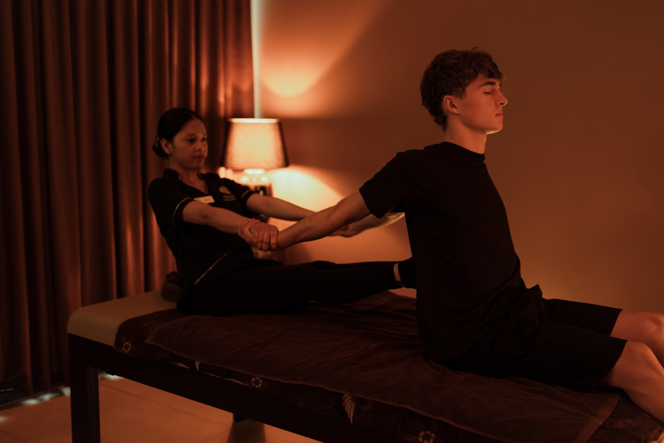 Klasyczny masaż tajski, oferowany w Asana Spa to jeden z najstarszych i najbardziej popularnych masaży na świecie, mający swoje początki już w starożytności. Zaliczany jest do masaży głębokich. Filozofia masażu tajskiego opiera się na połączeniu akupresury najważniejszych punktów na ciele, intensywnego rozciągania, elementów yogi pasywnej oraz refleksologii. Czasami, jest również nazywany „yogą dla leniwych„, bowiem podczas masażu tajskiego wykorzystywanych jest wiele pozycji zaczerpniętych z tradycyjnej yogi, mających właściwości lecznicze. Tajowie wykorzystują klasyczny masaż tajski do walki z wieloma dolegliwościami, m.in. przy bólu kręgosłupa i stawów, bólu głowy, chronicznym zmęczeniu, bezsenności i szeroko pojętych bólach mięśniowych. Masaż ten to idealne rozwiązanie dla osób ceniących sobie mocny, skuteczny masaż, który działa korzystnie na cały organizm. Siła masażu tajskiego w Asana Spa jest zawsze dostosowana do potrzeb klienta. Zabieg wykonywany jest w specjalnym, luźnym stroju, który nie krępuje ruchów i zapewnia pełen komfort podczas masażu. Strój otrzymają Państwo na miejscu w naszym spa, dzięki czemu można w pełni oddać się chwili relaksu bez żadnych przygotowań.